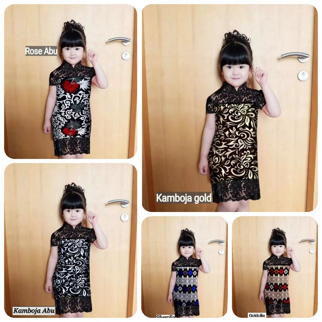 Name: Dress Claire Kids Dress Anak Batik Kombi Brukat Dress Pesta Anak 5 Warna