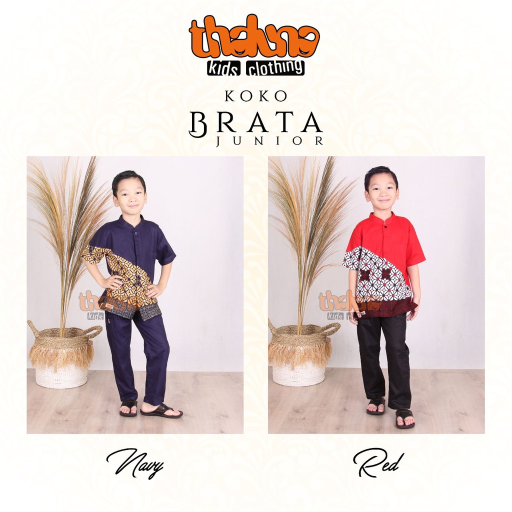 Koko bermotif batik, berlengan pendek dikombinasikan bahan polos dengan desain diagonal. Kancing sembunyi pada sepanjang dada sebagai bukaan. Terdapat saku pada bagian dada. Dipadukan dengan celana panjang berbahan katun jepang twill polos berwarna senada dengan koko. Sekeliling pinggang menggunakan karet, terdapat saku pada sisi kanan celana. Tersedia ukuran S, M, L , XL, 10, 12. Terdapat 2 pilihan warna; Navy & Red.